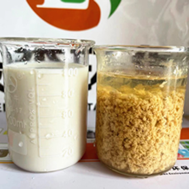 綠森環(huán)保技術團隊應某化妝品客戶要求上門技術服務,現場給客戶廢水破乳劑中試。客戶廢水:沐浴露廢水,特點:含有乳化劑、增稠劑、抗氧化劑、防腐殺菌劑和香精色素等,廢水顏色:淺黃色。使用破乳劑破乳后廢水上清液清澈透明,如下圖       &nbs···